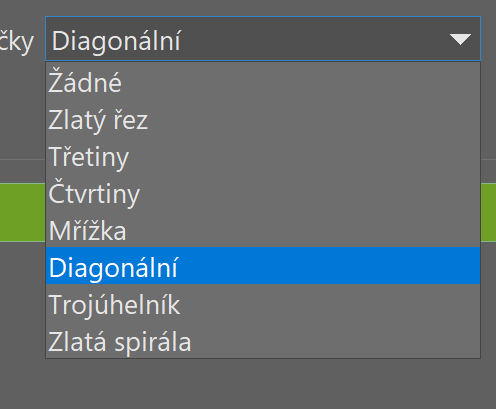 V nabídce Ořez lze zvolit poměr stran obrázku, výchozí hodnota je vždy Aktuální poměr. V seznamu lze vybrat několik předdefinovaných poměrů stran, případě lze číselně zadat požadovaný poměr. Vedle rozbalovací nabídky je tlačítko, pomocí kterého si můžete často používané poměry stran přidat do seznamu.